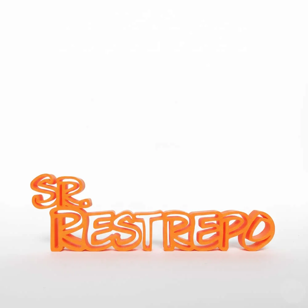 Haz que cada espacio sea único con nuestra placa 3D personalizada con nombre en color naranja. Cada placa está impresa en alta calidad, diseñada especialmente para resaltar el nombre que elijas con un estilo elegante y moderno.